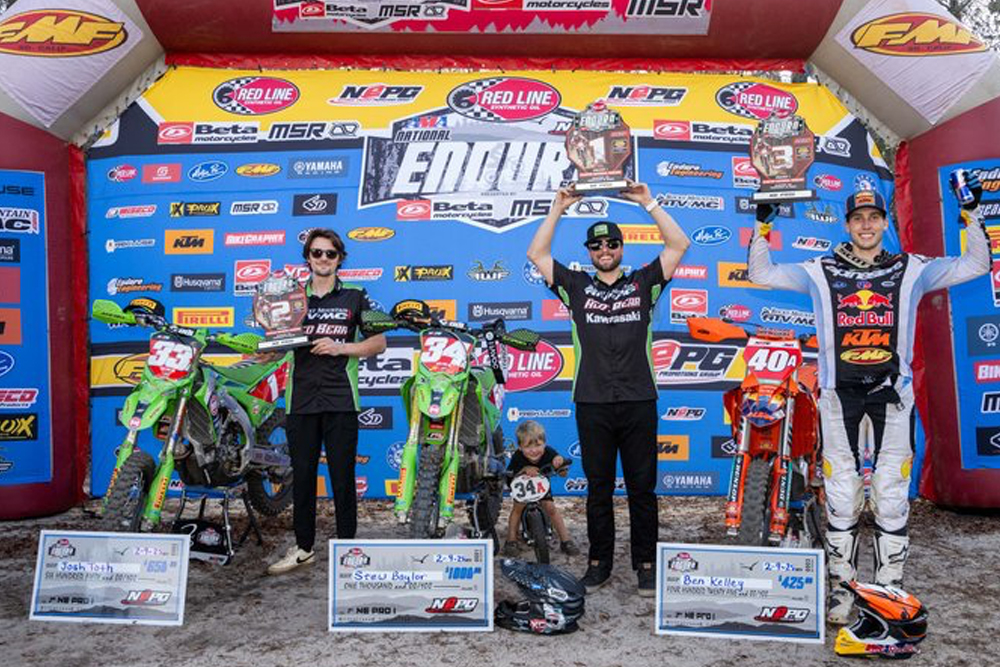 “I think this is the sixth time I’ve won this event as a professional,” said Steward Baylor Jr. “Josh [Toth] and I were talking a little bit about that last section—probably 30 to 40 percent of that is old hare scramble trails that I grew up riding. You remember little bits and pieces. You remember, especially in there, don’t get off the track because there are some stumps that would get you. We went back and forth in the off-season [about paddle tires]. I felt like when I made a mistake and needed to recover, the paddle tire was there. So, I ended up going with the paddle tire. I heard a rumor this was going to be tight from some of the guys from the dual sport last week. When you get in those tight, twisty sections of the track, it’s easy to make mistakes and figured it would come in clutch.”