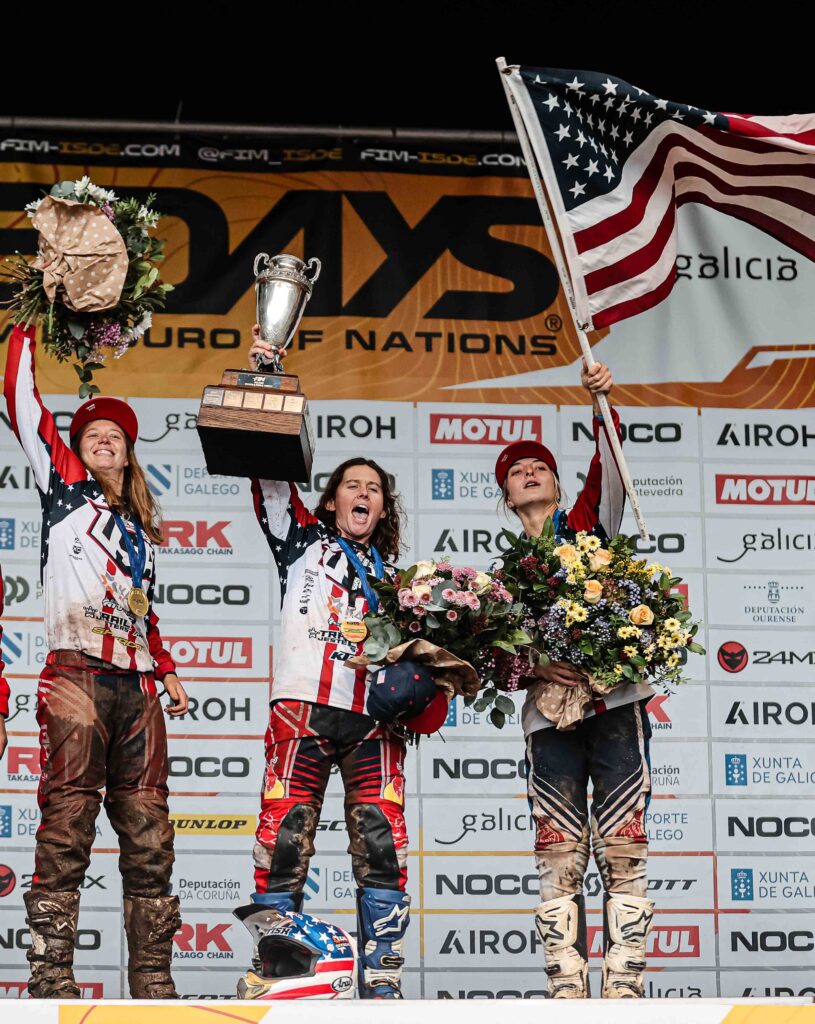 Along with Rachel Gutish and Ava Silvestri, Richards eyes the final motocross test tomorrow, knowing the team is nearly four minutes ahead of Australia and almost 22 minutes in front of third-place Sweden, so tomorrow’s goal is to get to the finish—what every competitor has in mind when starting this race.